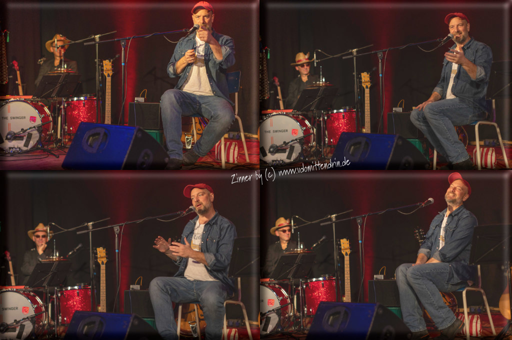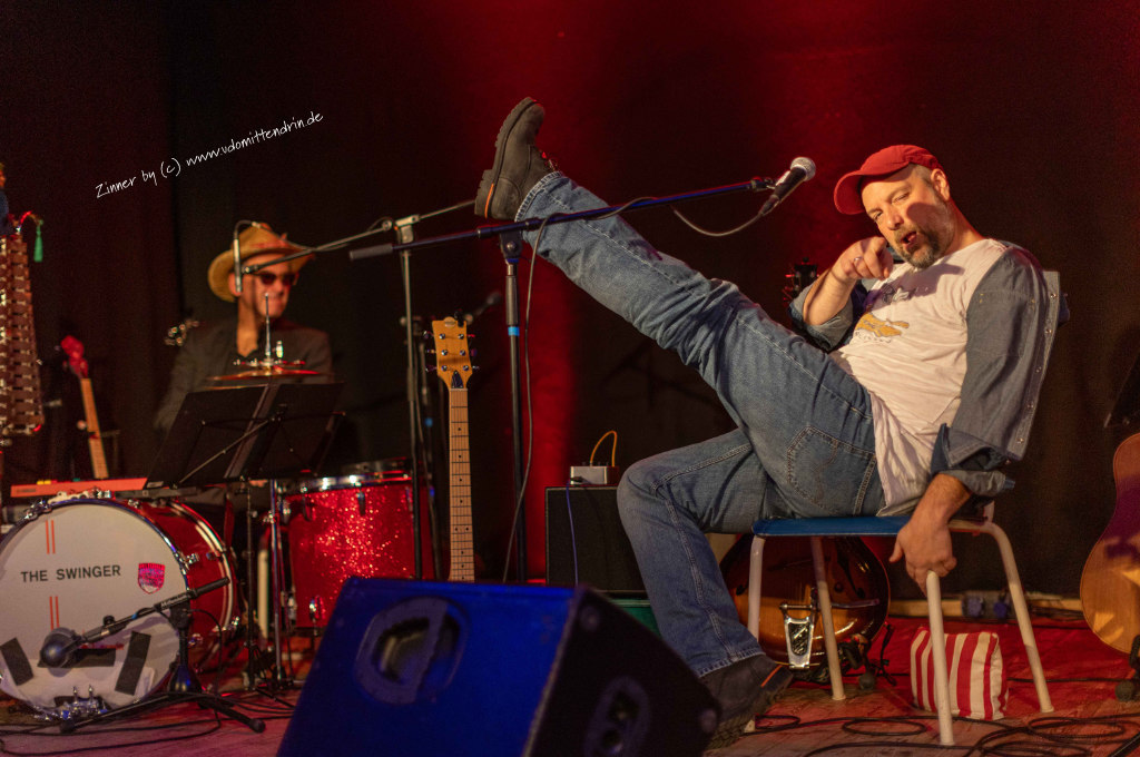 „Der Teufel, das Mädchen, der Blues und ich“ ist die Überschrift der neuen Zinner Spielzeit. Zinner spielt wie der Teufel, das Mädchen fand in man in den Geschichten rund um die Hauptstadt Berlin oder später in der Tinder Story und jede Menge Blues zog sich sowieso wie ein roter Faden durch die gesamte stimmige Vorstellung. Ein echter Zinner. Leibhaftig und locker gut gelaunt präsentierte er sich einer ausverkauftem Auers Livebühne. Mit dabei war Peter „Lightning“ Pichler, dem man allerdings auch gerne das Prädikat Stummfisch hätte verleihen können. Seine Beiträge beschränkten sich auf leise rhythmische Elemente, das Akkordeon, aber auch das Banjo und das kleine „Spielzeug“ Keyboard – ansonsten blieb er stumm und im Hintergrund.