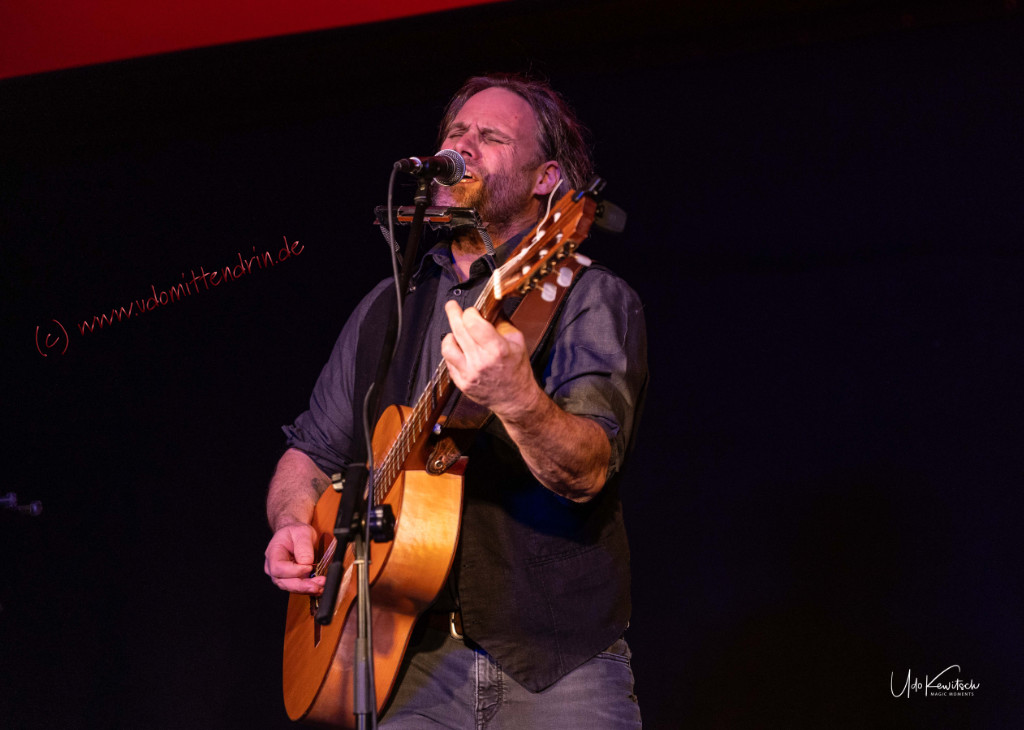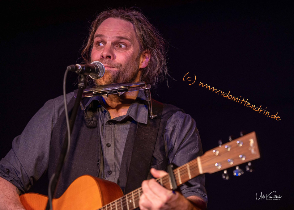 Steff spielt sich rhythmisch locker warm, stimmt „sei Gitarr´, die im Auto war über Nacht“ und holt „die lieben Gäste“ erst einmal ab, indem er in lockerem Ton drauflos plaudert, bevor er den ersten Song mit gutem Versatz losdonnert und das Tempo vorgibt. Der Test gilt dem Publikum, ob sie das Programm auch vertragen und sogleich mitdonnern dürfen: „jatz is a do“ enthält autobiographische Spuren, so wie all die wunderbaren Songs aus seiner Feder. Die darauffolgende Story aus Landshut bringt den Saal ebenso zum Lachen wie der darauffolgende „Baggerfahrer“ für klatschende Hände sorgt, der seine Anleihen im „Bulldogfahrer“ nimmt. „Soviel künstlerische Freiheit muss sei“ verrät der Steff.