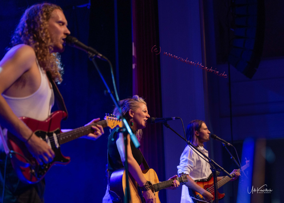 Toby Beard ist so vielseitig wie die Bandbreite ihrer Musik, sie passt auf die großen Festivals dieser Welt ebenso wie in ein Wohnzimmerkonzert. Sie kann laut, sie kann leise, sie kann Rock, Blues, Folk aber auch die Ballade und den Songwriter. Reißt ihr die Saite und geht die Batterie ihrer Gitarre in die Knie, so improvisiert sie kurzerhand und spielt inmitten des Ballhaussaals unter dem Kronleuchter eine unplugged Straßenversion. Die Frau ist Power, die Band liefert zusätzliche Kraft. Der Drummer Jack Duffy bot an diesem Abend gar zwei grandiose Solis, bei einem unterstützte, wohin mit all der Power, Toby rhythmisch mit den Drumsticks überzeugend.